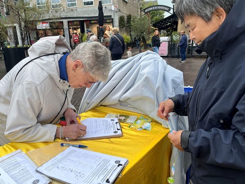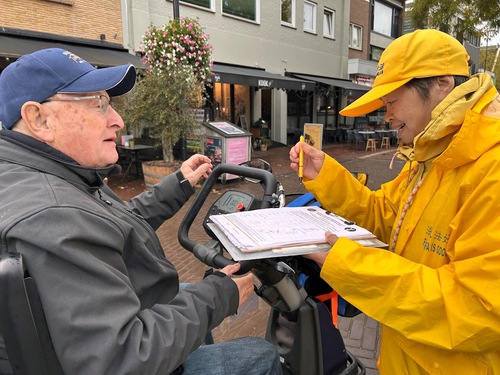 مردی چینی دوچرخهاش را کنار غرفه نگه داشت و به یکی از تمرینکنندگان گفت: «تمرین شما عالیست!» این تمرینکننده برایش درباره فالون دافا و خروج از سازمانهای وابسته به حزب کمونیست چین توضیح داد. آن مرد گفت: «حزب کمونیست مردم زیادی را فریب داده است. میدانم که مردم چین زندگی سختی دارند.» او از تمرینکنندگان بهخاطر تلاششان در آن هوای نامساعد تشکر کرد و افزود: «خیلی عالی است که شما با برگزاری این رویدادها تلاش میکنید مردم را از وضعیت چین آگاه کنید.»