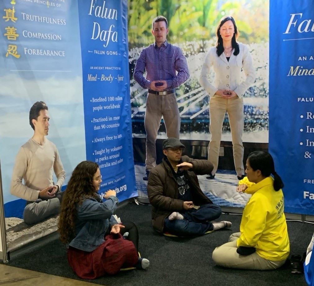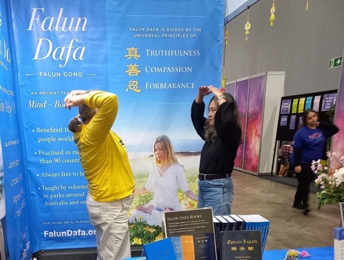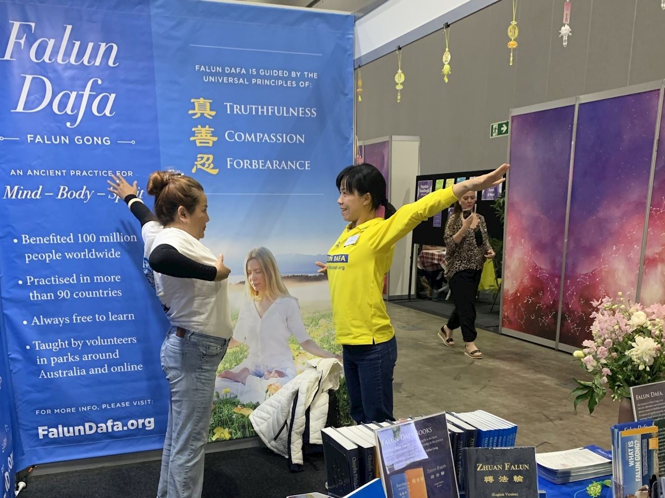 تمرینکنندگان فالون دافا در جشنواره ذهن–جسم–روح که از ۱۴ تا ۱۶نوامبر۲۰۲۵ در مرکز همایشهای ملبورن برگزار شد، شرکت کردند.