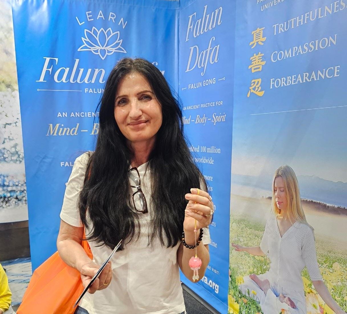 او اظهار کرد که با اصول حقیقت، نیکخواهی، بردباری ارتباط گرفته است: «فکر میکنم کاری که انجام میدهید فوقالعاده است. فقط به اطلاعرسانی درباره زیبایی فالون دافا، احساس صلحآمیز آن و اصولش در زندگی روزمره ادامه دهید.»
