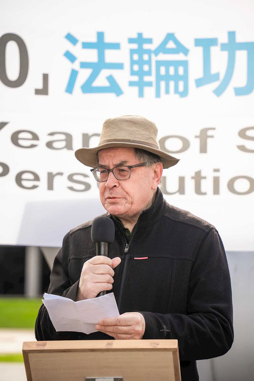 آنتونی برانت، عضو پیشین شورای ویلینگتون، در تجمع تمرینکنندگان سخنرانی کرد.