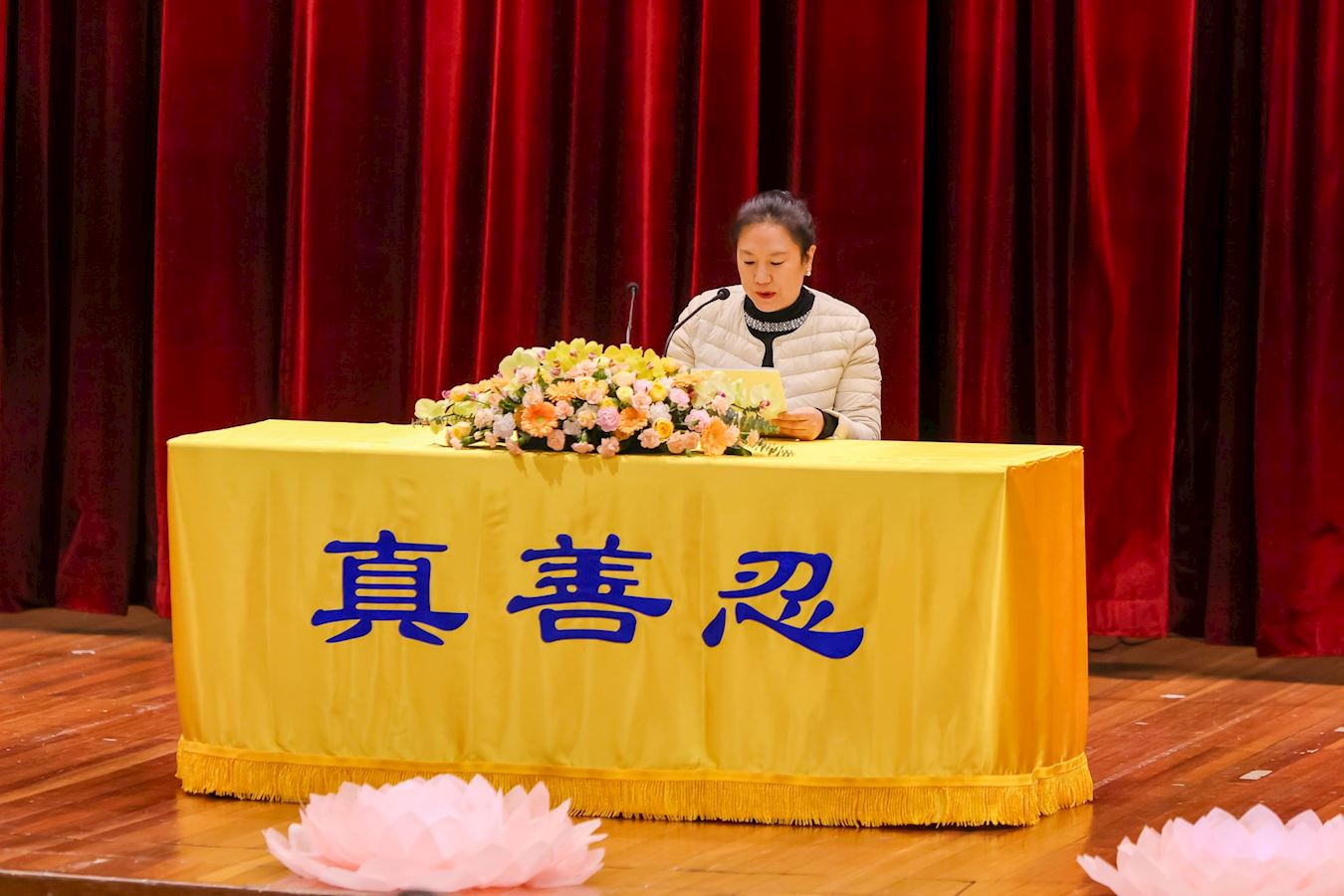 تمرینکنندهای گفت پس از اینکه شوهرش درگذشت، غرق اندوه بود، اما به خودش یادآوری میکرد که لازم است «دوباره بایستد و به تزکیه ادامه دهد.» یک ماه پس از فوت شوهرش و با تشویق تمرینکنندگان دیگر، پذیرفت رهبری یک پروژه را بهعهده بگیرد. دیگران صدای او را هنگام خواندن فا تحسین کردند. او فهمید که استاد به او صدای خوبی دادهاند تا بتواند در پروژه دافا شرکت کند. او بر ترس و وابستگیاش به راحتطلبی غلبه کرد. او افزود که در تزکیهاش سستی نخواهد کرد.