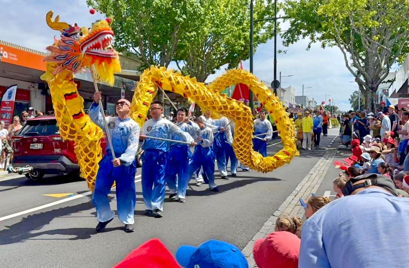 گروه رقص اژدها در ۲۲نوامبر۲۰۲۵، در راهپیمایی کریسمس در اونیهونگا (آوکلند) شرکت کرد.