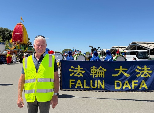 مارک اسکیف، داوطلب کمک در این راهپیمایی، گروه تمرینکنندگان فالون دافا را تحسین کرد.