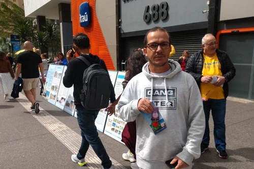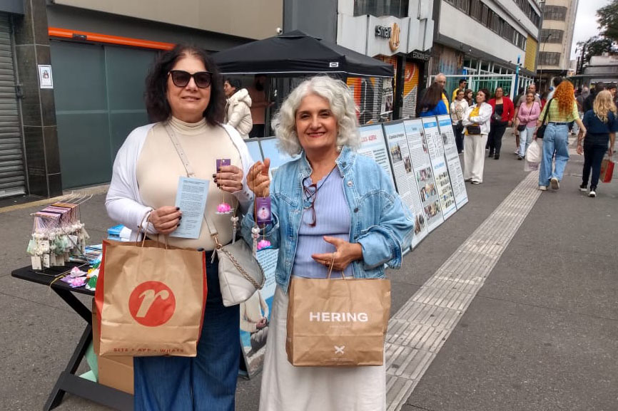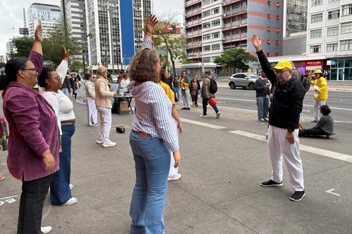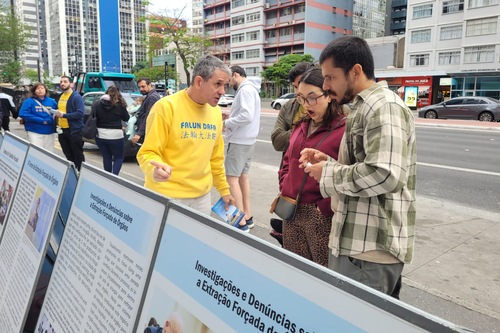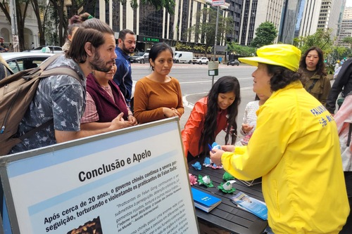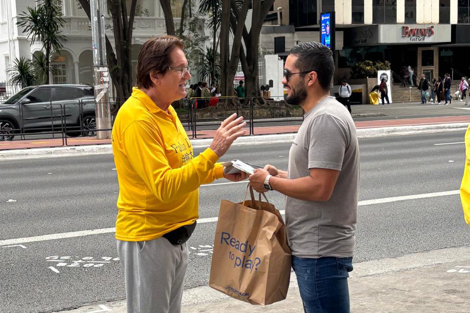 (Minghui.org) تمرینکنندگان فالون دافا در ۹نوامبر۲۰۲۵، از بخشهای مختلف برزیل، ازجمله ریو دو ژانیرو، برازیلیا و میناس گرایس، در خیابان پائولیستا در مرکز شهر سائوپائولو گرد هم آمدند تا فواید تمرین معنوی خود را برای مردم بازگو کنند. آنها همچنین به ساکنان و گردشگران دربارهٔ آزار و شکنجهٔ درحالوقوعِ تمرینکنندگان فالون دافا در چین بهدست حزب کمونیست چین (ح.ک.چ) اطلاعرسانی کردند.