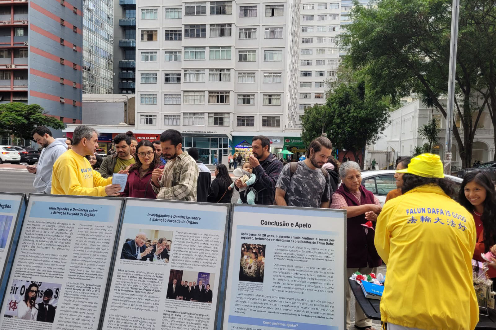 تمرینکنندگان در ۹نوامبر۲۰۲۵، در رویدادی در سائوپائولو، فالون دافا را معرفی و درباره آزار و شکنجه آن بهدست ح.ک.چ، به مردم اطلاعرسانی کردند.