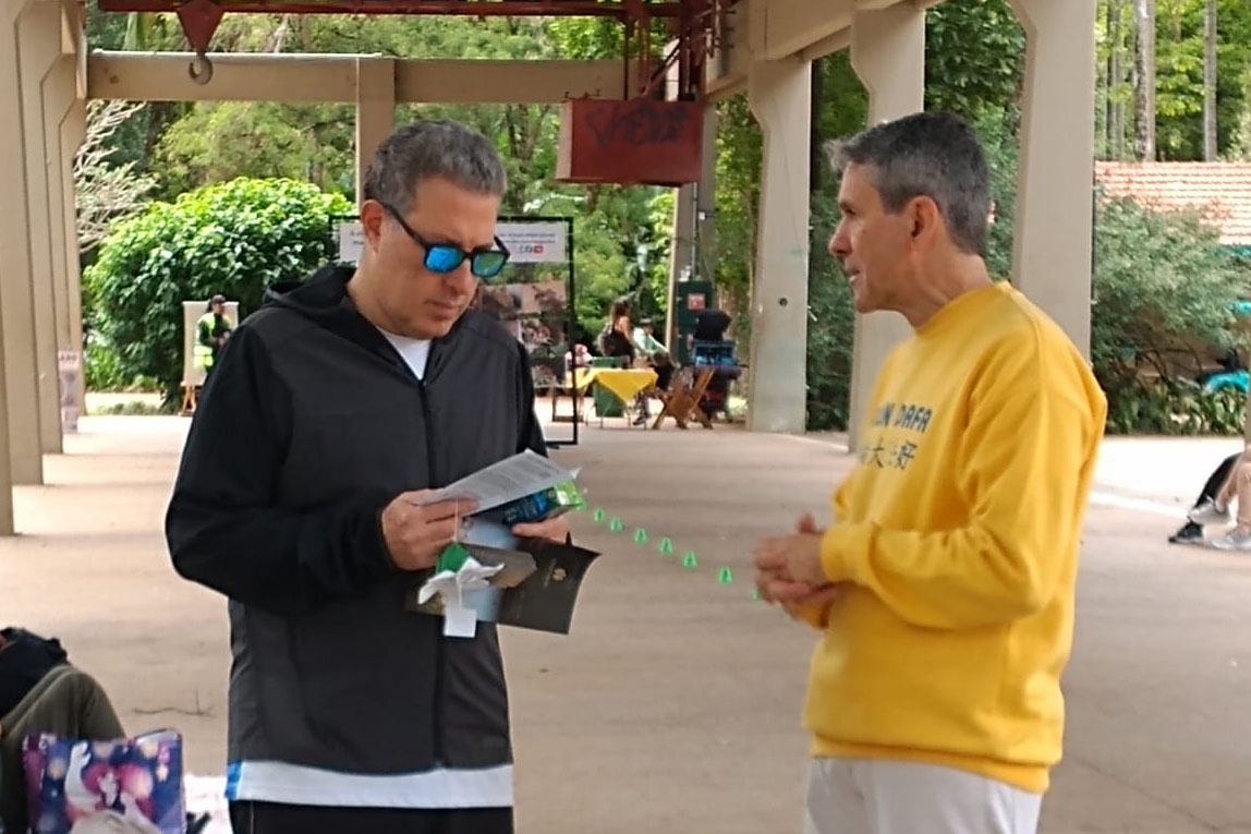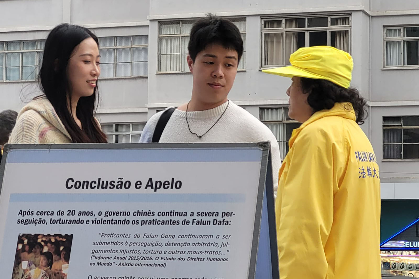 دو مهاجر جوان به برزیل، از دیدن تصاویر آزار و شکنجه تمرینکنندگان فالون دافا بر روی تابلوها ناراحت شدند. آنها درباره فالون دافا آموختند و گفتند که تمرینی براساس اصول حقیقت، نیکخواهی، بردباری فوقالعاده است، بنابراین نمیتوانند درک کنند که چرا ح.ک.چ میخواهد چنین تمرین صلحآمیزی را تحت آزار و شکنجه قرار دهد.