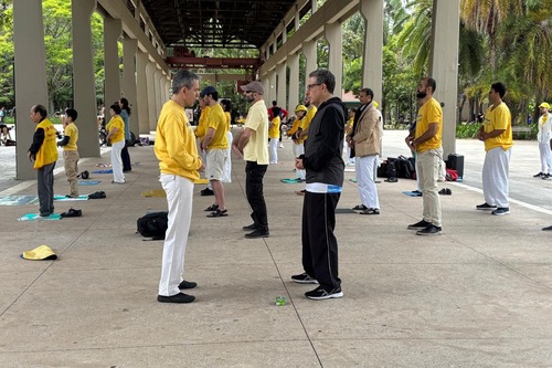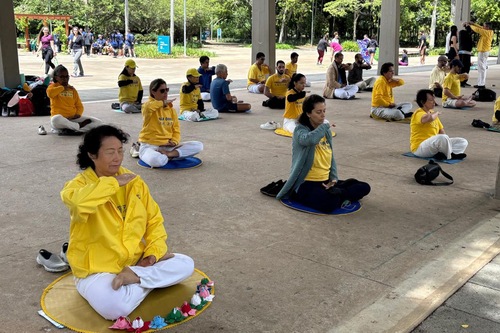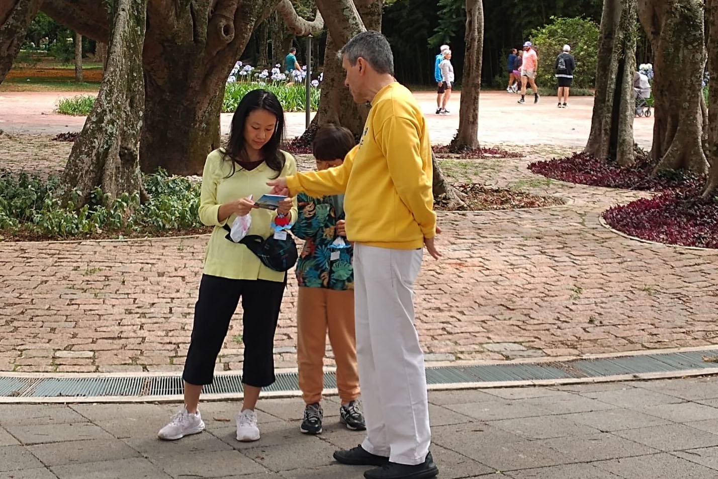 آن روز صبح، تمرینکنندگان تمرینات را انجام دادند و در پارک ایبیراپوئرا، یکی از مکانهای محبوب سائو پائولو، آموزههای فالون دافا را مطالعه کردند.