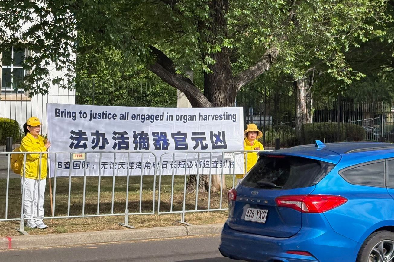 (Minghui.org) تمرینکنندگان فالون دافا در ۲۴نوامبر۲۰۲۵، با برگزاری تجمعی در مقابل ساختمان پارلمان در کانبرا، به سفر «ژائو لِجی»، سومین مقام قدرتمند ح.ک.چ، اعتراض کردند. وی نقش مهمی در آزار و شکنجهٔ فالون دافا (فالون گونگ) و برداشت اعضای بدن افراد زنده با مجوز دولت ایفا میکند. تمرینکنندگان از دولت استرالیا خواستار تحریم وی شدند.