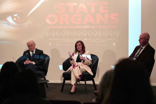 حضور مادلین بریجت (وسط)، وکیل حقوق بشر استرالیایی، «دیوید ماتاس»، وکیل حقوق بشر کانادایی، و آقای دِلِر در اوایل نوامبر۲۰۲۵، در جلسه گفتوگوی مستند «اعضای بدن دولتی».