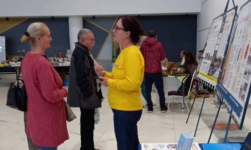 ماریا و لیانا از آشنایی با فالون دافا خوشحال شدند، مطالب اطلاعرسانی را برداشتند و اطلاعات تماس تمرینکننده در تیمیشوآرا را دریافت کردند. لیانا کتاب فالون گونگ را خرید. این دو خانم گفتند که میخواهند در انجمن خود که افراد زیادی گرد هم میآیند، درباره تمرینات ارائهای برگزار کنند.