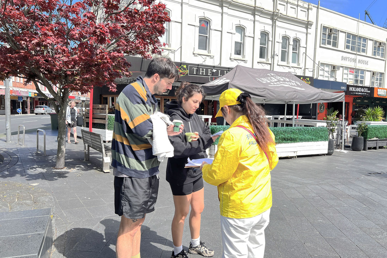 (Minghui.org) تمرینکنندگان در اول نوامبر۲۰۲۵ در لامزدن گرین، واقع در نیومارکت (مرکز تجاری اوکلند)، رویدادی برگزار کردند. آنها درباره اینکه حزب کمونیست چین (ح.ک.چ) چگونه بهمدت ۲۶سال فالون دافا را مورد آزار و شکنجه قرار داده است، به مردم اطلاعرسانی کردند و از تمامی اقشار جامعه خواستند به این موارد نقض فاحش حقوق بشر توجه کنند.