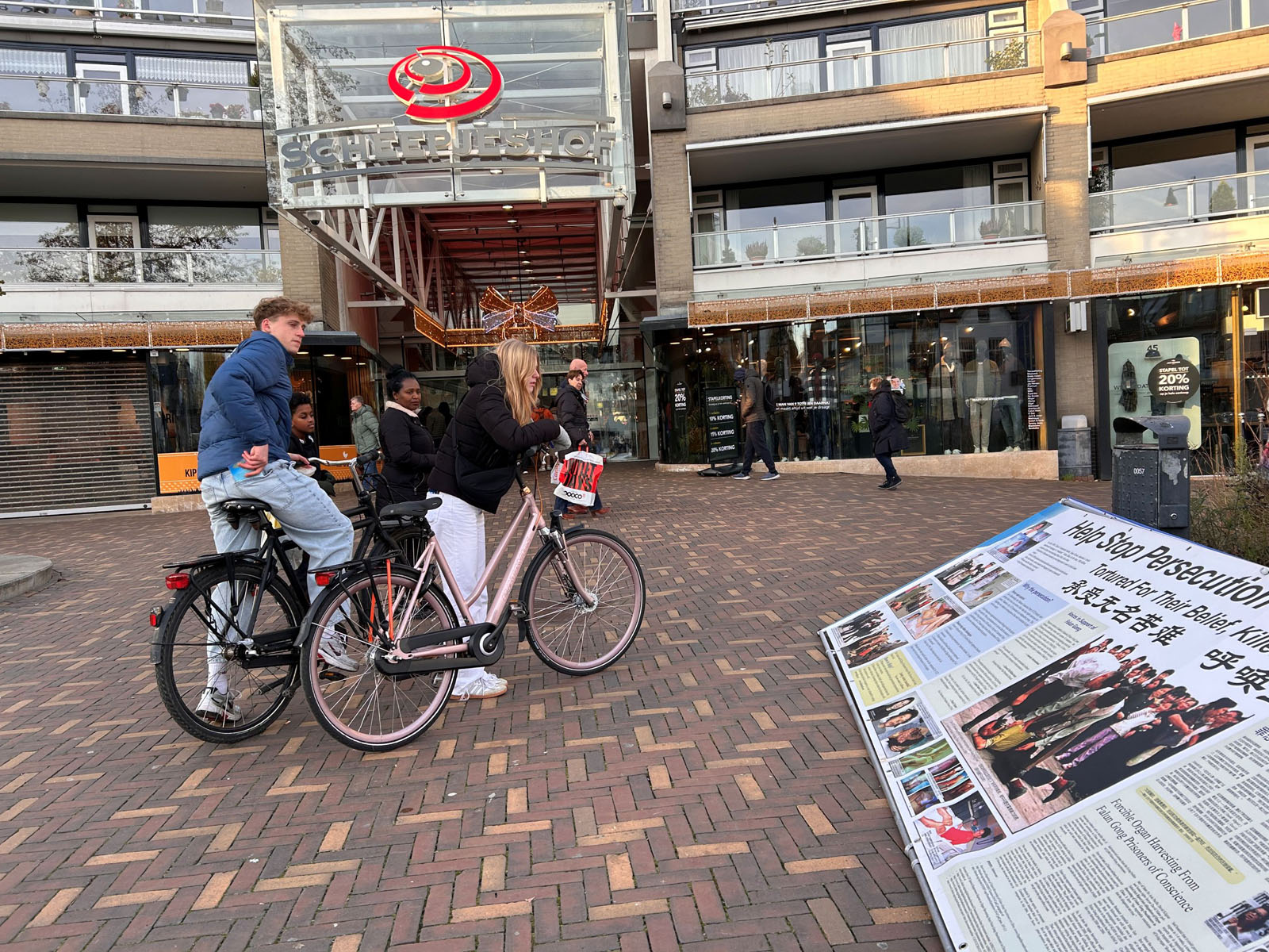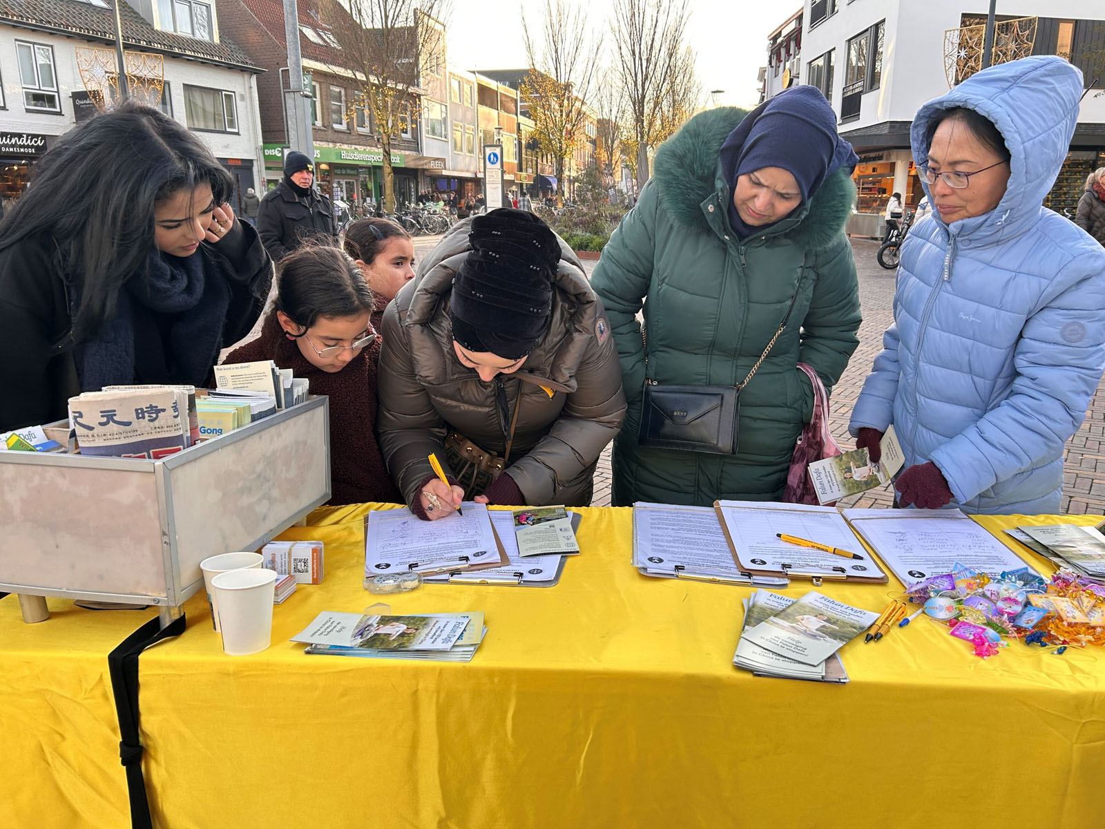 تمرینکنندگان حوالی ظهر ۲۲نوامبر در خیابان هوخاشترات، تابلوهای نمایش اطلاعات را برپا کردند. آنها تمرینات را بهنمایش گذاشتند، بروشور توزیع کردند و درباره آزار و شکنجه ۲۶ساله تمرینکنندگان فالون دافا بهدست حزب کمونیست چین (ح.ک.چ) در چین، با مردم صحبت کردند. مردم یک دادخواست را در حمایت از توقف آزار و شکنجه و همچنین جنایت برداشت اعضای بدن افراد زنده که با مجوز دولت انجام میشود، امضا کردند.