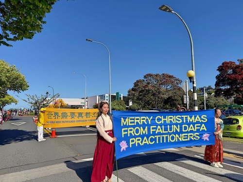 (Minghui.org) تمرینکنندگان در جزیره شمالی، بین ۴ تا ۷دسامبر۲۰۲۵، در هفت راهپیمایی کریسمس شرکت کردند که فرصتی بود تا فالون دافا را به جوامع محلی معرفی کنند. از آنان در هر هفت راهپیمایی بهخوبی استقبال شد و بسیاری از مردم گفتند فرهنگ سنتی چین و اجرای گروه مارش تیانگوئو را دوست دارند. آنها همچنین اصول حقیقت، نیکخواهی، بردباری در فالون دافا را ستودند.