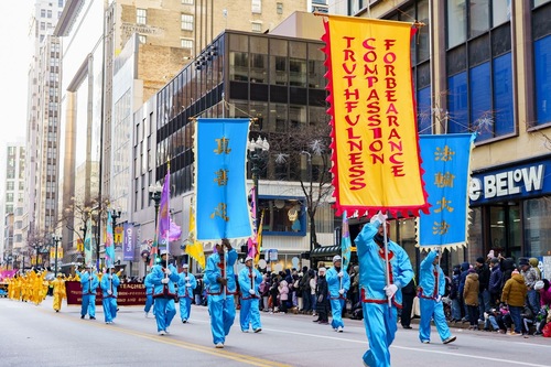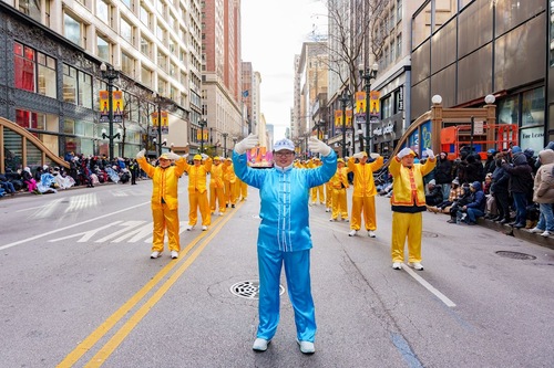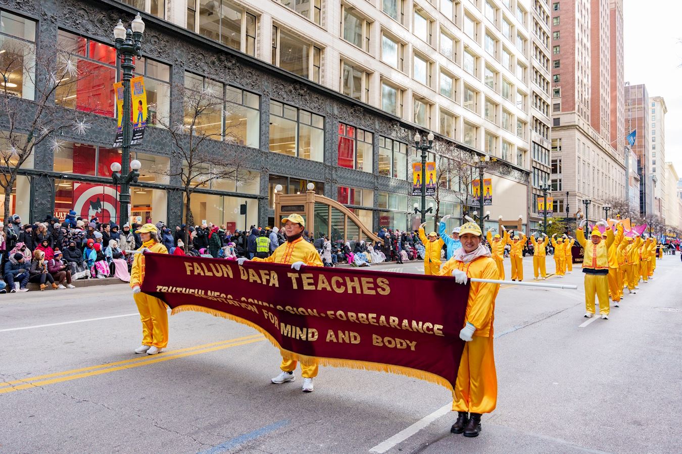 حضور تمرینکنندگان فالون دافا در راهپیمایی شکرگزاری شیکاگو، در ۲۷نوامبر۲۰۲۵