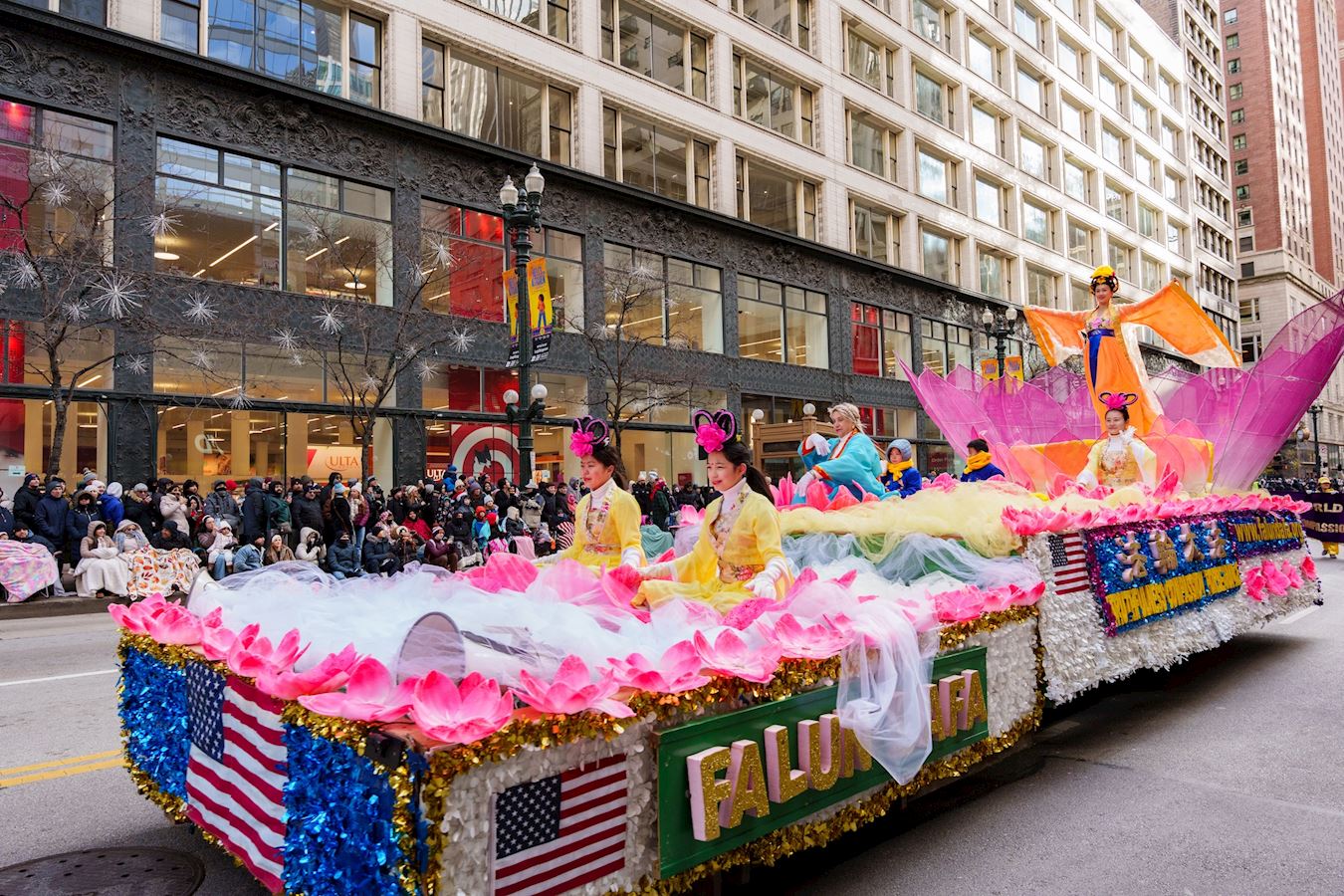 تمرینکنندگان فالون دافا، ۲۲ سال پیاپی در این راهپیمایی شرکت کردهاند. گروه آنها امسال شامل یک تیم حامل پرچم، تیمی برای بهنمایشگذاشتن تمرینات و یک تختروان متحرک بزرگ بود.