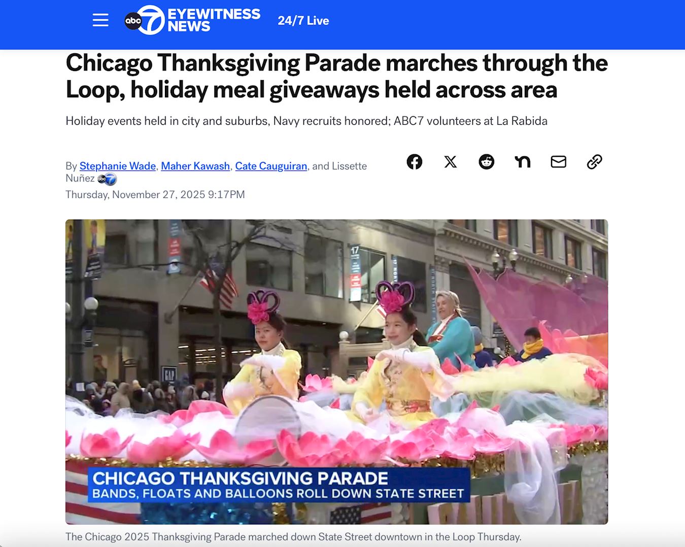 نودویکمین راهپیمایی شکرگزاری شیکاگو در ۲۷نوامبر۲۰۲۵ برگزار شد.