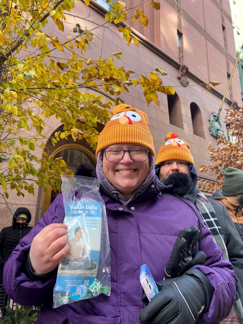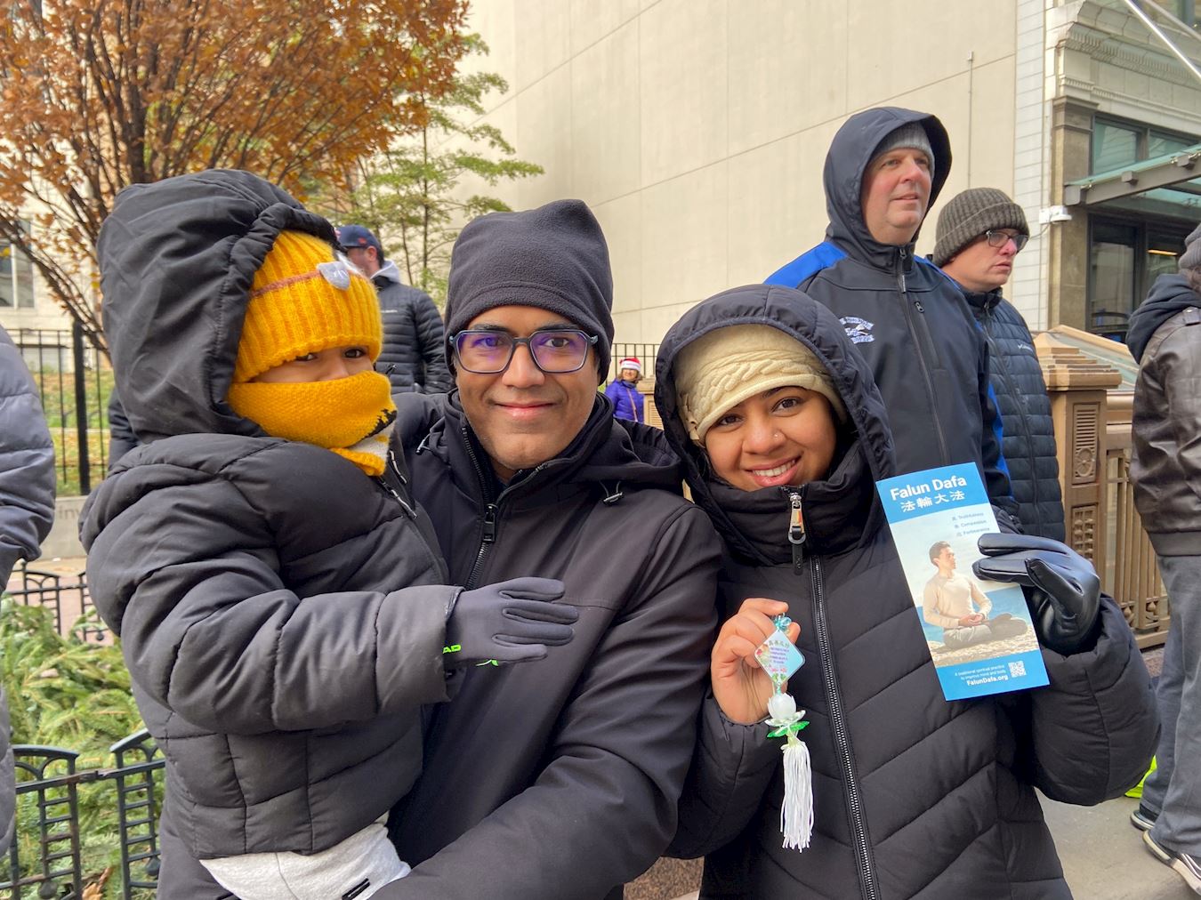 او گفت که ایام تعطیلات شکرگزاری باعث میشود بیشتر درباره فالون دافا بیندیشد و قدردان آن باشد. والدین و فرزندانش همگی از تمرین دافا بهرهمند شدهاند. او گفت: «واقعاً سپاسگزارم که در مسیر تزکیه هستم. امیدوارم مردم در این روز سردِ تعطیل بتوانند ازطریق این راهپیمایی، انرژی مثبت و گرمای فالون دافا را احساس کنند.»