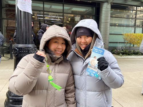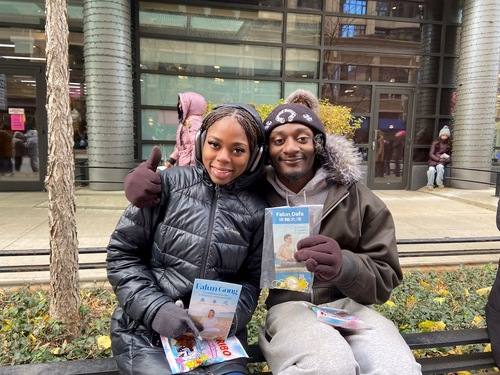 گومز و همسرش گابی، از ساکنان شیکاگو، بابت آشنایی با فالون دافا، ابراز خوشحالی کردند. گابی گفت: «مایلم درباره این تمرین بیشتر بدانم.» او از دیدن تختروان متحرک فالون دافا خوشحال شد و گفت: «تختروان متحرک بسیار زیباست! خوشحالم شما را اینجا میبینم.»
