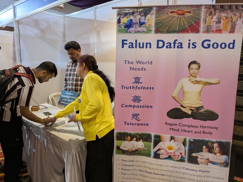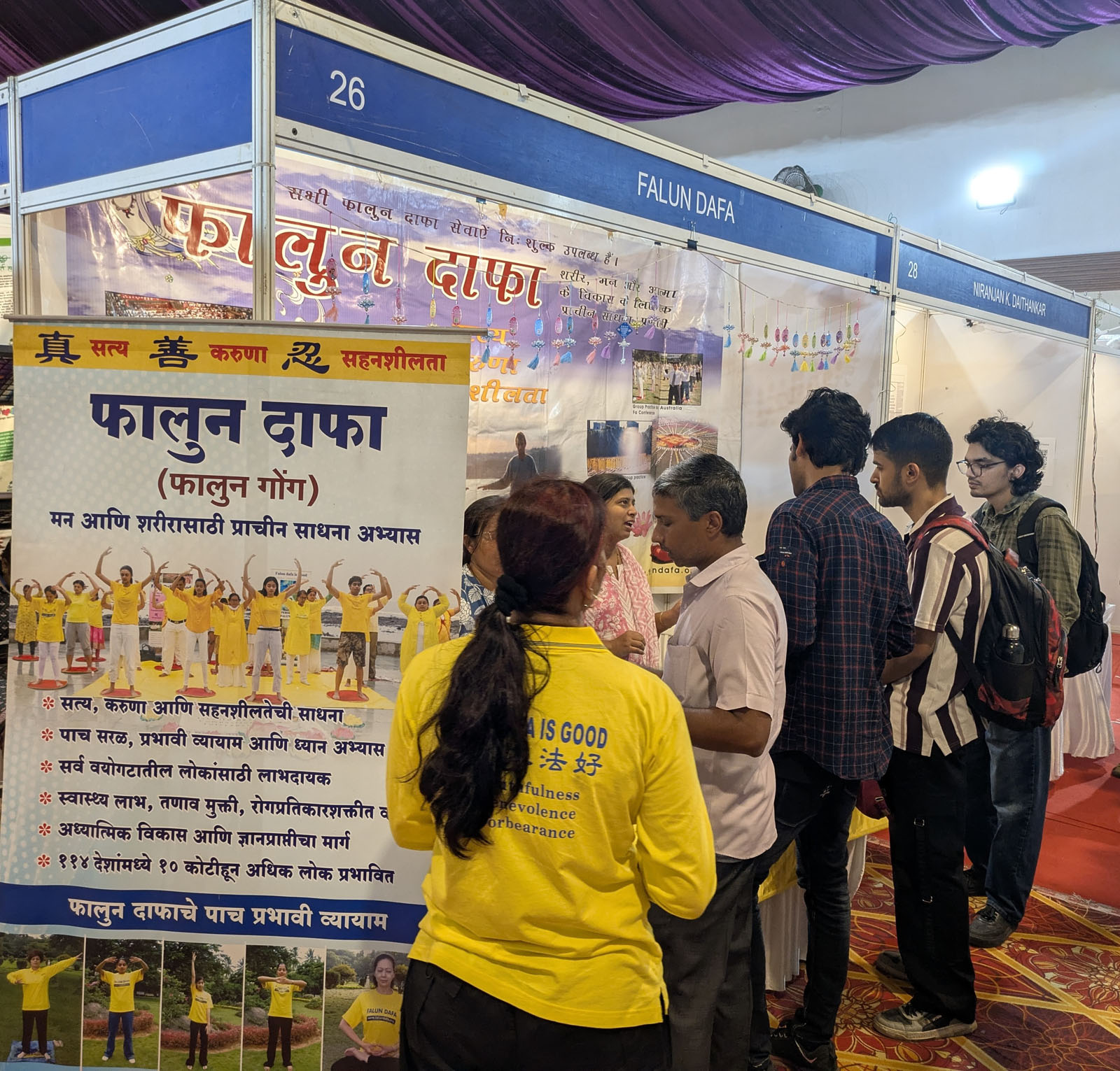 درمجموع ده تمرینکننده فالون دافا از پونه، در این رویداد شرکت کردند و غرفهای اختصاصی را اداره کردند تا تمرین تزکیه فالون دافا را به بازدیدکنندگان معرفی کنند. تمرینکنندگان نسخههایی از فالون گونگ و جوآن فالون، دو کتاب اصلی آموزههای این تمرین، را به زبانهای هندی، انگلیسی و زبان محلی مراتی در این غرفه به نمایش گذاشتند.