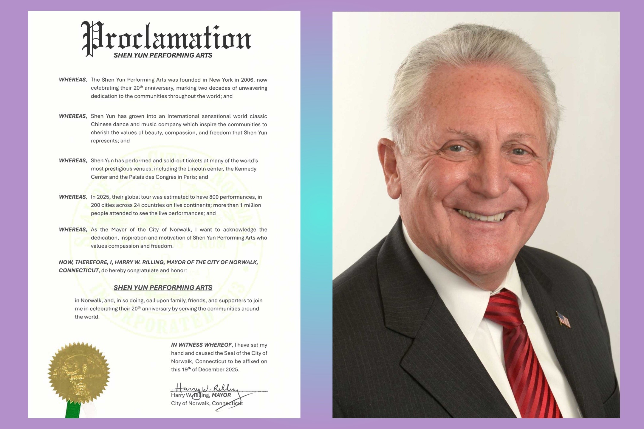 «در تأیید این موضوع، در تاریخ ۱۹دسامبر۲۰۲۵ این سند به امضا من رسید و مُهر رسمی شهر نورواک، ایالت کانتیکت، بر آن الصاق شد.»