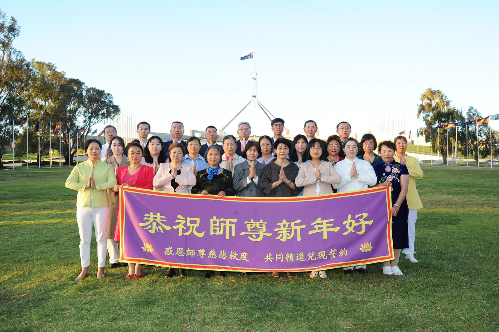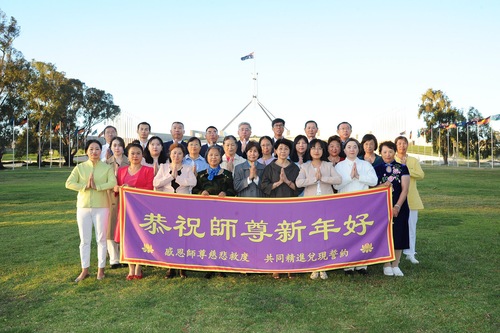 تمرینکنندگان فالون دافا در کانبرا، با احترام سال نو را به استاد لی تبریک گفتند