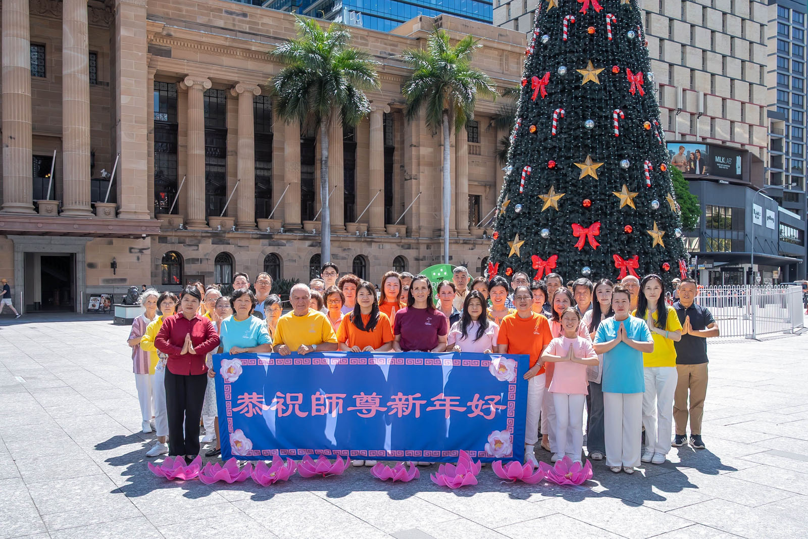 تمرینکنندگان فالون دافا در کوئینزلند، با احترام سال نو را به استاد لی تبریک گفتند
