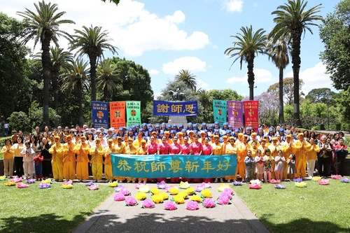 تمرینکنندگان فالون دافا در سیدنی، با احترام سال نو را به استاد لی تبریک گفتند