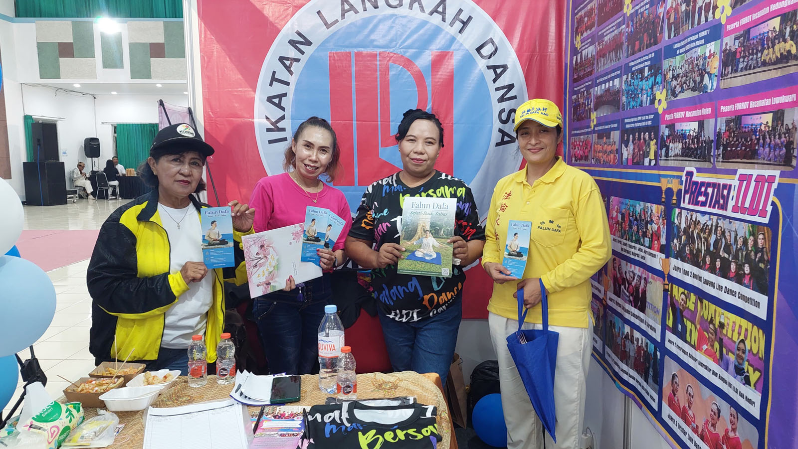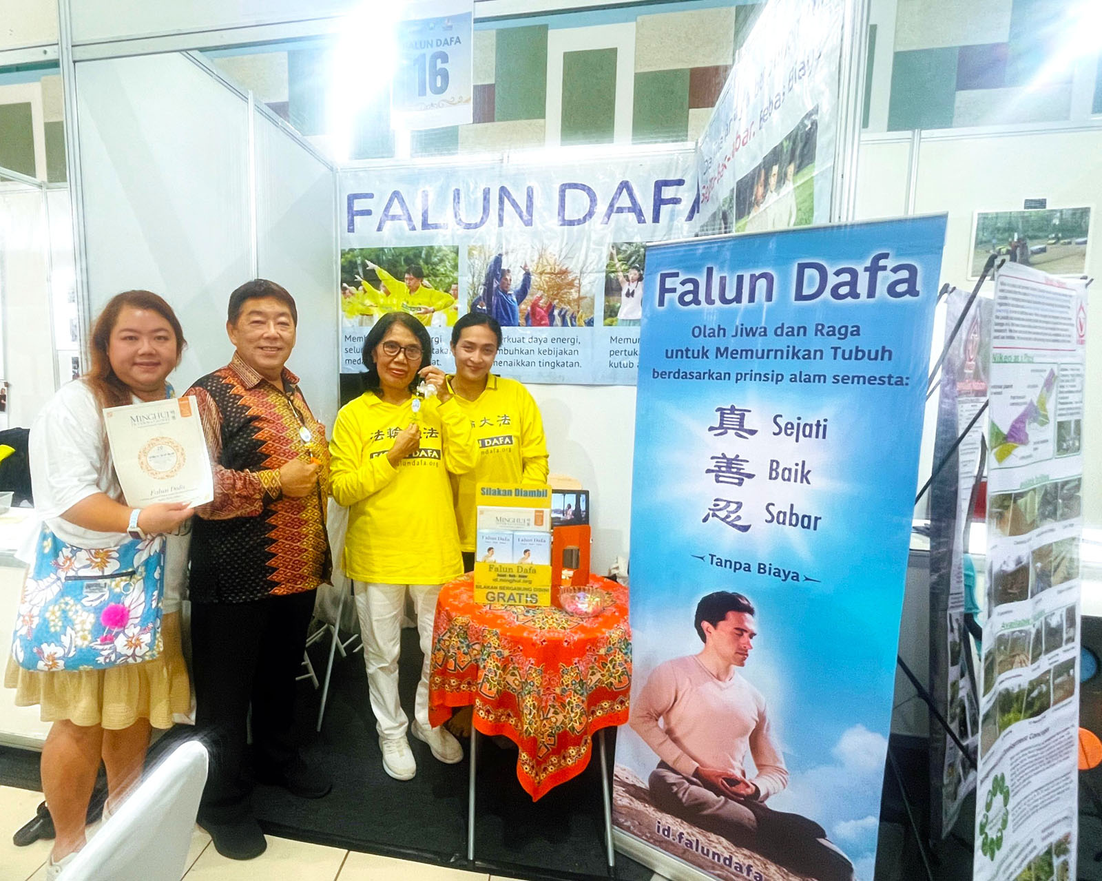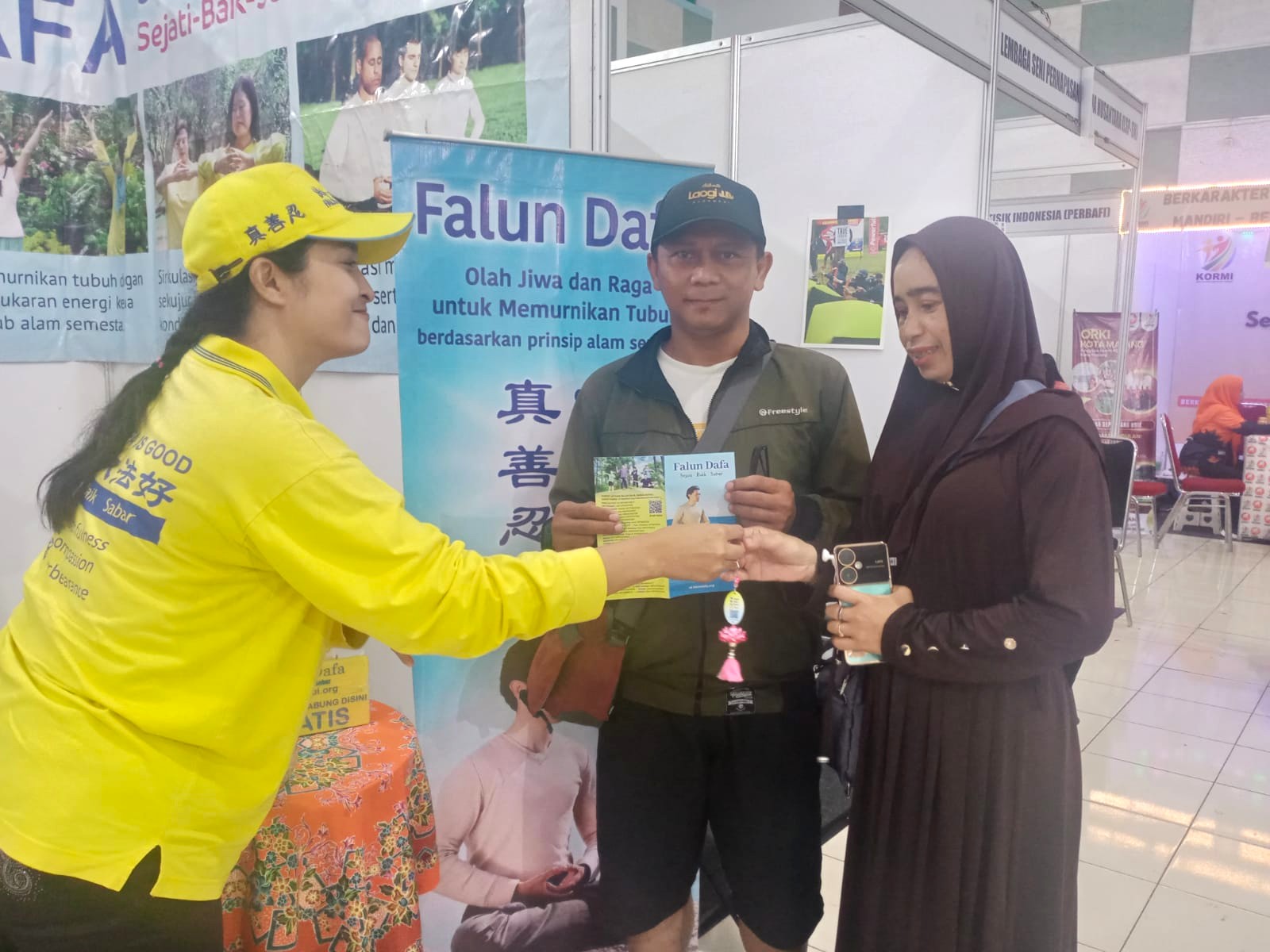 زوجی چینیاندونزیایی با دیدن غرفه فالون دافا بسیار خوشحال شدند. آنها گفتند پیشتر هنگام سفر به استرالیا، درباره فالون دافا شنیده بودند و حتی زن قبلاً تمرینات فالون دافا را امتحان کرده بود.