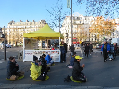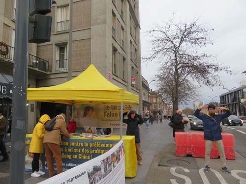تمرینکنندگان در ۲۹نوامبر۲۰۲۵، در میدان پلاس دولِکْلوز در شهر نانت غرفهای برپا کردند. بهرغم آبوهوای نامساعد، بسیاری از مردم توقف و با تمرینکنندگان صحبت و دادخواست پایاندادن به آزار و شکنجه بهدست ح.ک.چ را امضا کردند.