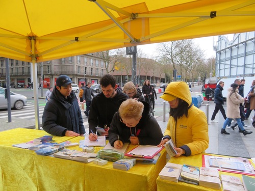 با وجود بارش باران در ۲۹نوامبر، بسیاری از مردم در میدان آلفونس فیکه توقف و با تمرینکنندگان صحبت و دادخواست پایاندادن به آزار و شکنجه بهدست ح.ک.چ را امضا کردند.
