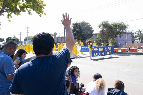 جو، ساکن محلی، هنگام عبور تمرینکنندگان، برایشان کف زد و گفت: «خوشحالم که میبینم تمرینات را برای مردم جامعه ما به نمایش میگذارید. فکر میکنم همه باید فالون گونگ را یاد بگیرند. از اصول حقیقت، نیکخواهی، بردباری، صد در صد حمایت میکنم. این اصول در جامعه ما بسیار موردنیاز است.»