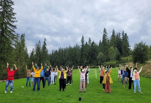 تمرینکنندگان تمرینات فالون دافا را انجام میدهند. نسخۀ اصلی به زبان چینی