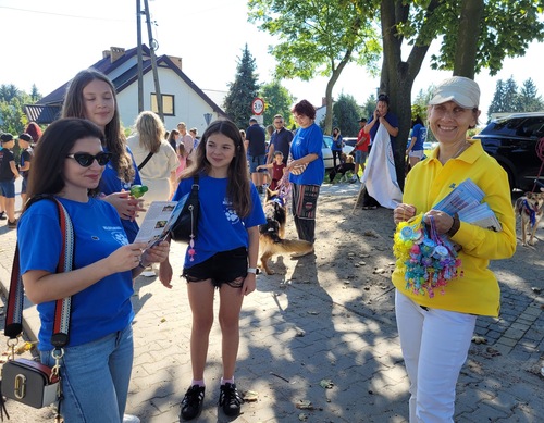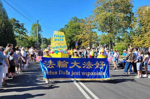 تمرینکنندگان فالون دافا در لهستان سالها است که در راهپیمایی جشن برداشت محصول شرکت کردهاند. امسال نیز تختروان گلکاریشده رنگارنگ آنها و اژدهای طلایی سنتی چینی بار دیگر به بخش محبوبی از راهپیمایی تبدیل شد و با تشویق و کف زدن همراه بود. یک مادر و پسرش روی تختروان تمرینات فالون دافا را همراه با موسیقی به نمایش میگذاشتند. تمرینکنندهای در کنار تختروان، با بلندگو تمرینات را به عموم معرفی میکرد. در دو طرف تختروان، تمرینکنندگان بروشورهایی را میان تماشاگران توزیع میکردند. بنرهایی که به زبانهای چینی و لهستانی نوشته شده بود پیامهایی را منتقل میکردند: «فالون دافا خوب است»، «حقیقت، نیکخواهی، بردباری ما را به انسانهای خوبی تبدیل میکند»، «فالون دافا در سراسر جهان تمرین میشود» و «فالون دافا در لهستان». اژدهای طلایی با حضار تعامل داشت که موجب شگفتی و شادمانی آنها میشد.
