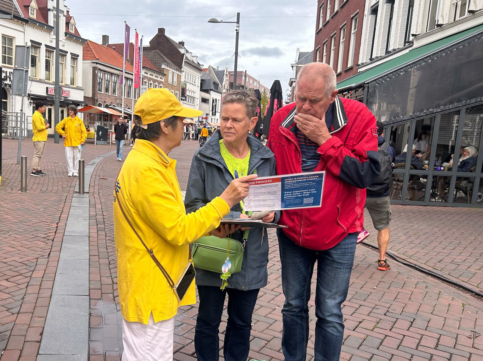 مادری بههمراه پسرش ابتدا با عجله از کنار غرفه فالون دافا میگذشتند که بنر مربوط به برداشت اعضای بدن تمرینکنندگان زنده فالون دافا بهدست ح.ک.چ را دیدند. آنها توقف و دادخواست را امضا کردند و گفتند میخواهند از تلاشهای تمرینکنندگان برای پایان دادن به این آزار و شکنجه حمایت کنند. پسر گفت: «این خیلی غمانگیز است. نمیدانم چه بگویم.» مادر افزود: «اتفاقات بد زیادی در چین رخ میدهد. ما راهی برای کسب اطلاعات بیشتر نداریم، زیرا رسانهها این موضوع را گزارش نمیکنند و چین کشوری بسته است که اجازه ارتباط با دنیای بیرون را نمیدهد.»