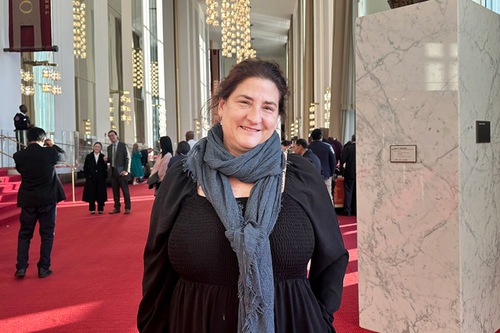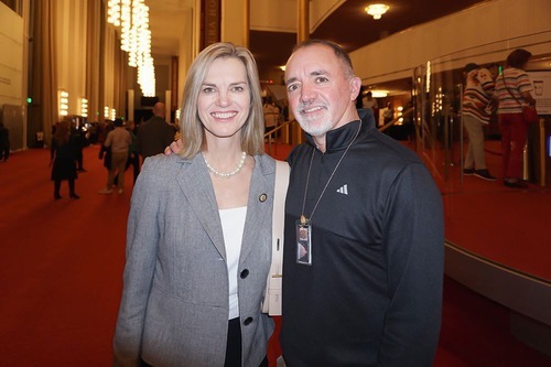 جولی فدورچاک، نماینده کنگره آمریکا از ایالت داکوتای شمالی، به همراه همسرش مایک، در تاریخ ۸ ژانویه ۲۰۲۶ شن یون را در واشنگتن دیسی تماشا کردند.