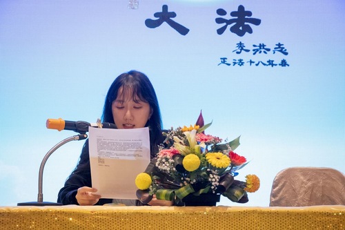۲۱ تمرینکننده درباره تجربیات خود در پیروی از اصول حقیقت، نیکخواهی، بردباری فالون دافا و نگاه به درون در خانه، محل کار و هنگام شرکت در پروژههای روشنگری حقیقت صحبت کردند. آنها گفتند که به استاد و فا ایمان دارند، با افکار درست بر مشکلات غلبه میکنند و با سایر تمرینکنندگان بدن واحدی تشکیل میدهند تا به استاد در نجات موجودات ذیشعور کمک کنند.