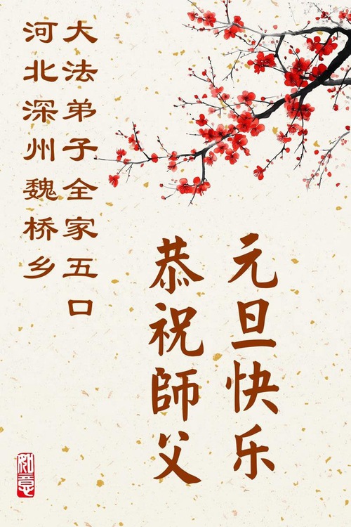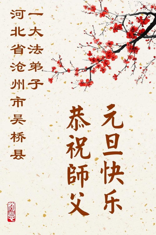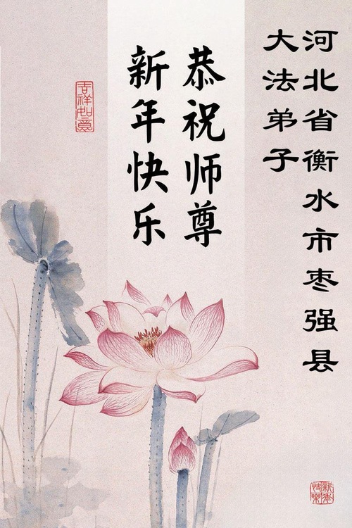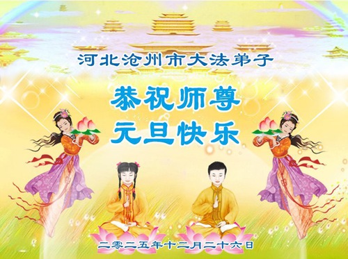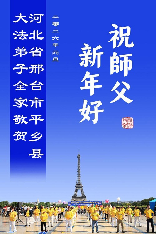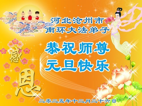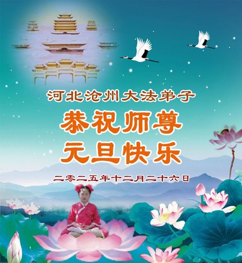 تمرینکنندگان فالون دافا از استان هبئی با احترام سال نو را به استاد لی هنگجی تبریک میگویند (109 تبریک)