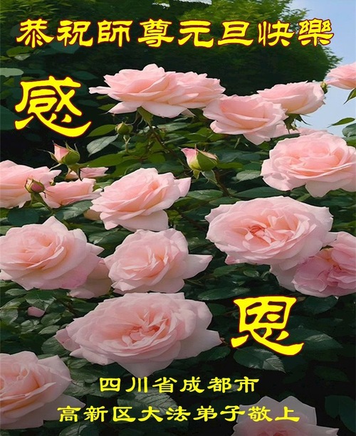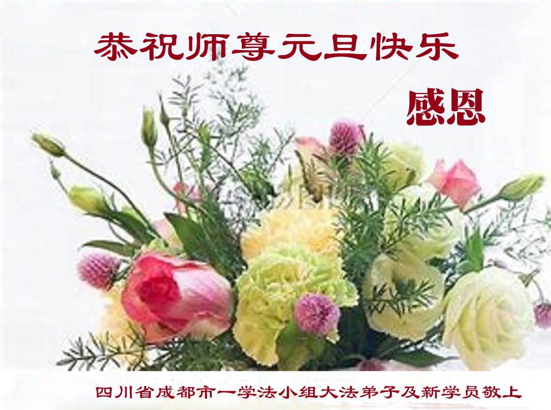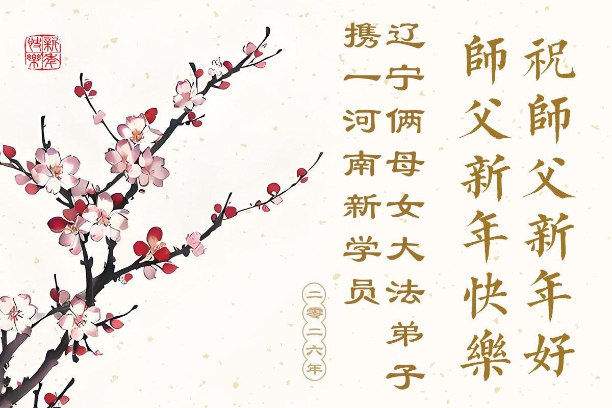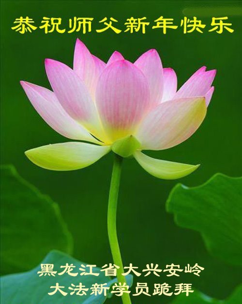 تمرینکنندهای در شهر تونگهوا، استان جیلین، که به تازگی فا را کسب کرده است، با احترام سال نو را به استاد بزرگ خیرخواه تبریک میگوید!