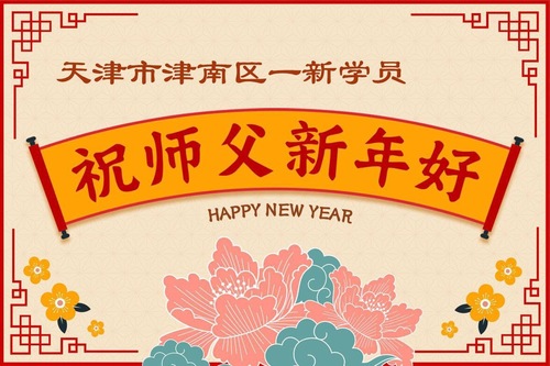 تمرینکنندهای جدید در منطقه جینان، تیانجین، با احترام سال نو را به استاد خیرخواه تبریک میگویند!