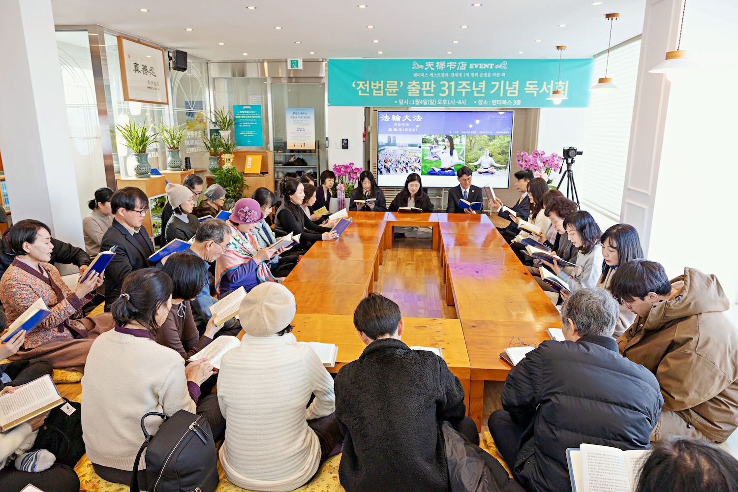 این رویداد در منطقه یونگسان با اجرای موسیقی آغاز شد. ژانگ شو، هماهنگکننده کتابفروشی، گفت: «امیدوارم همه درباره جوآن فالون بشنوند، آن را بخوانند و خرد کسب کنند.» بیش از ۵۰ نفر که در این جشن شرکت کردند، جوآن فالون را خواندهاند و درباره تجربیات خود صحبت کردند. تمرینکنندگان گفتند که این کتاب به آنها کمک کرده است تا در محل کار و زندگی روزمره مثبتاندیش بمانند.