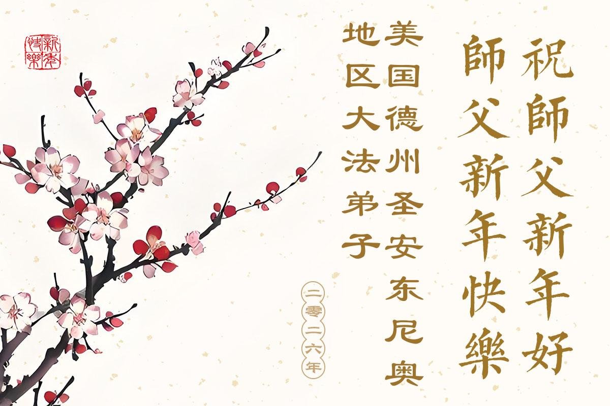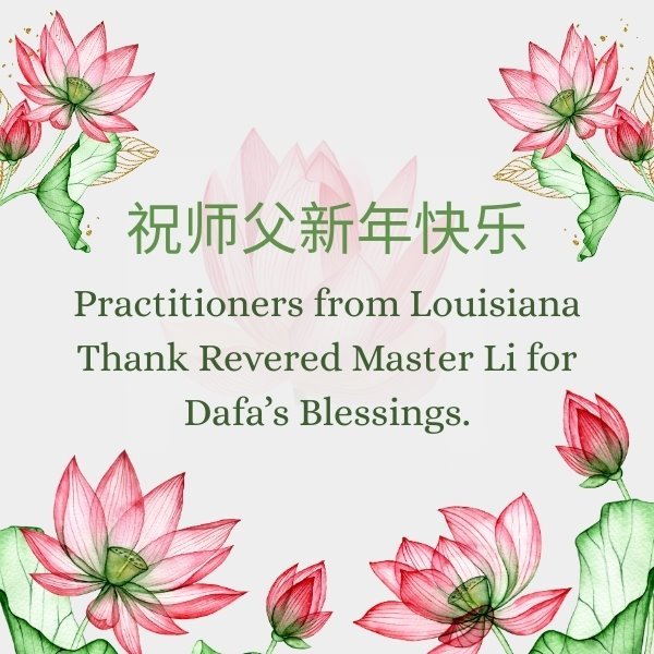 تمرینکنندگان فالون دافا در جنوب ایالات متحده با احترام سال نو را به استاد تبریک میگویند