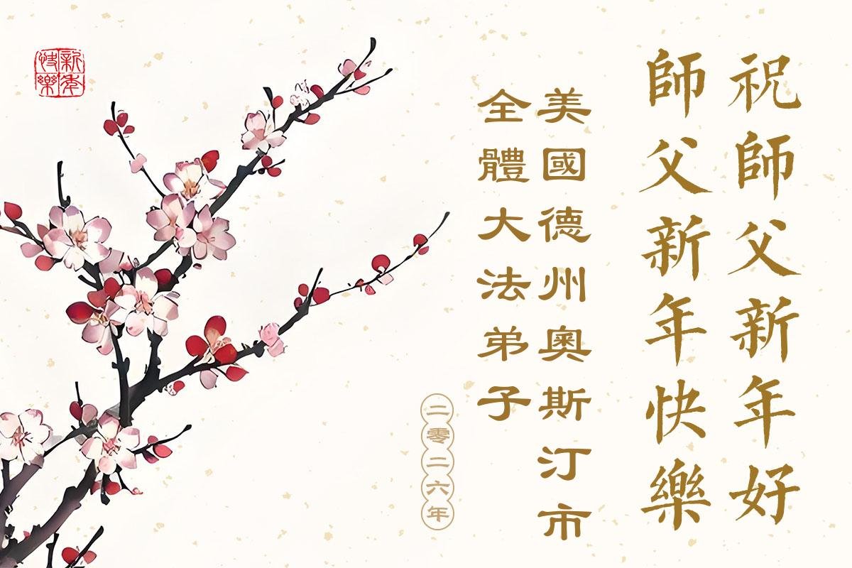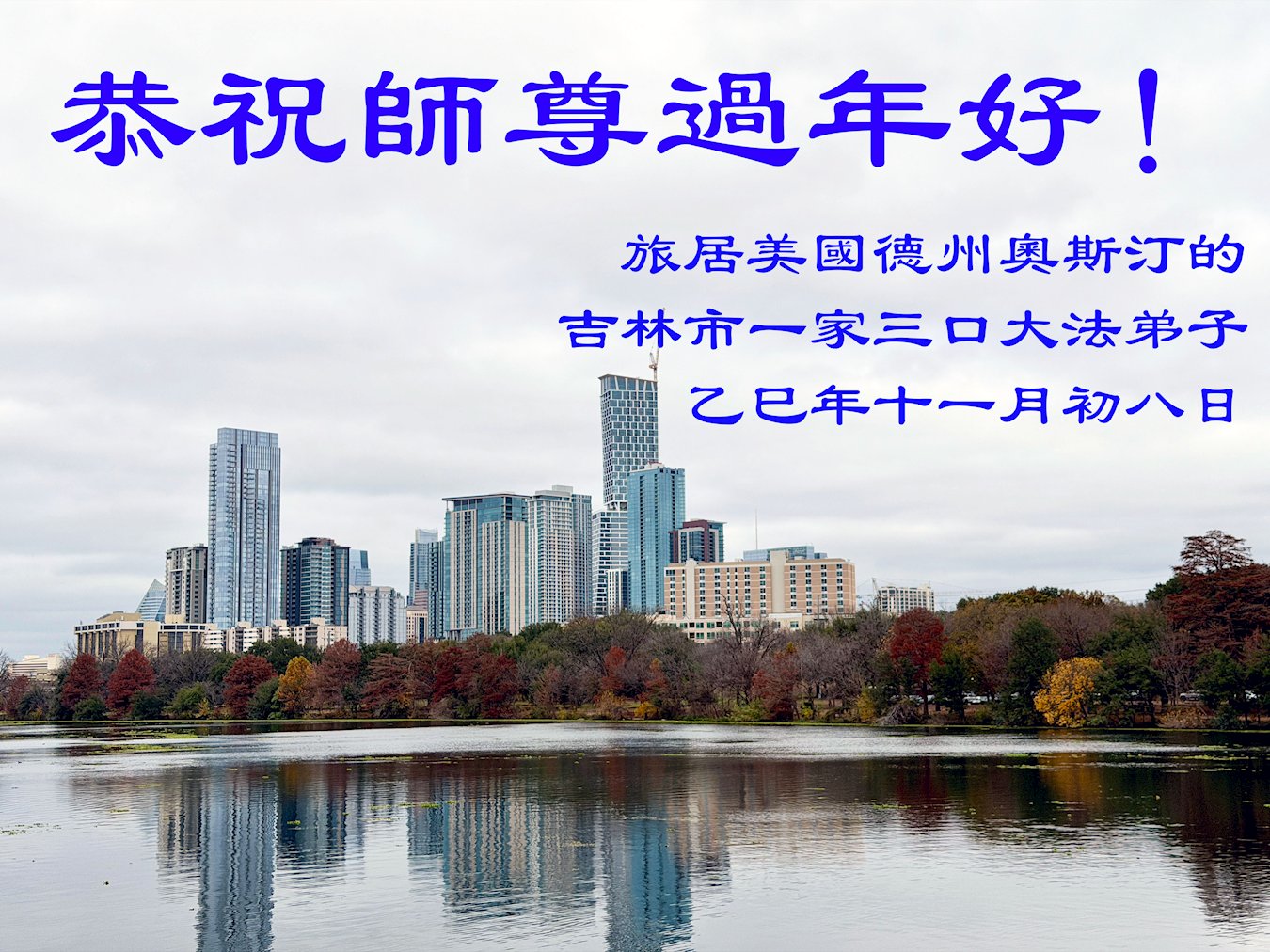 یک خانواده سه نفره از تمرینکنندگان از شهر جیلین، استان جیلین، چین، که اکنون در آستین، تگزاس، ایالات متحده زندگی میکنند، با احترام سال نو را به استاد تبریک میگویند!