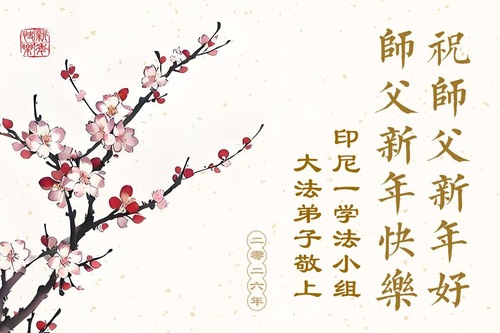 تمرینکنندگان در یک گروه مطالعه فا در اندونزی سال نو را به استاد محترم تبریک میگویند! تمرینکنندگان از یک وب سایت آموزش آنلاین تمرین فالون گونگ در اندونزی سال نو را به استاد محترم تبریک میگویند!
