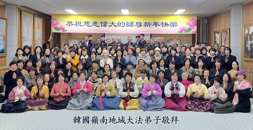 تمرینکنندگان فالون دافا در کره جنوبی سال نو را به استاد محترم تبریک میگویند!