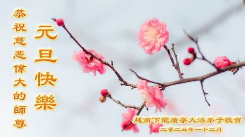 تمرینکنندگان فالون دافا در شهر هالونگ، استان کوانگ نین، ویتنام، با احترام سال نو را به استاد تبریک میگویند!