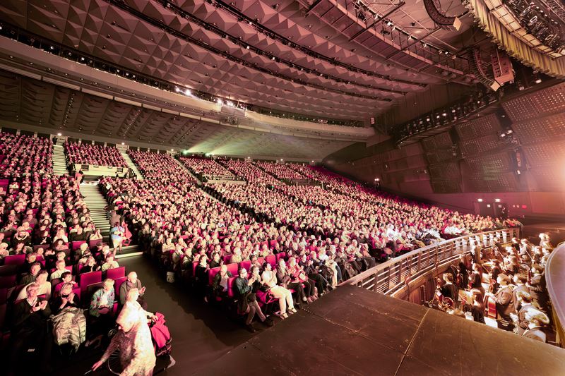 بازگشت اجراگران شرکت بینالمللی شن یون به سِن پس از پایان اجرا به تشویق تماشاچیان، در پنجمین اجرایشان که بلیتش بهطور کامل به فروش رفت در کاخ کنگره پاریس در پاریس، فرانسه، بعدازظهر ۲۶ژانویه