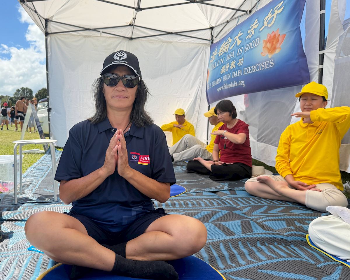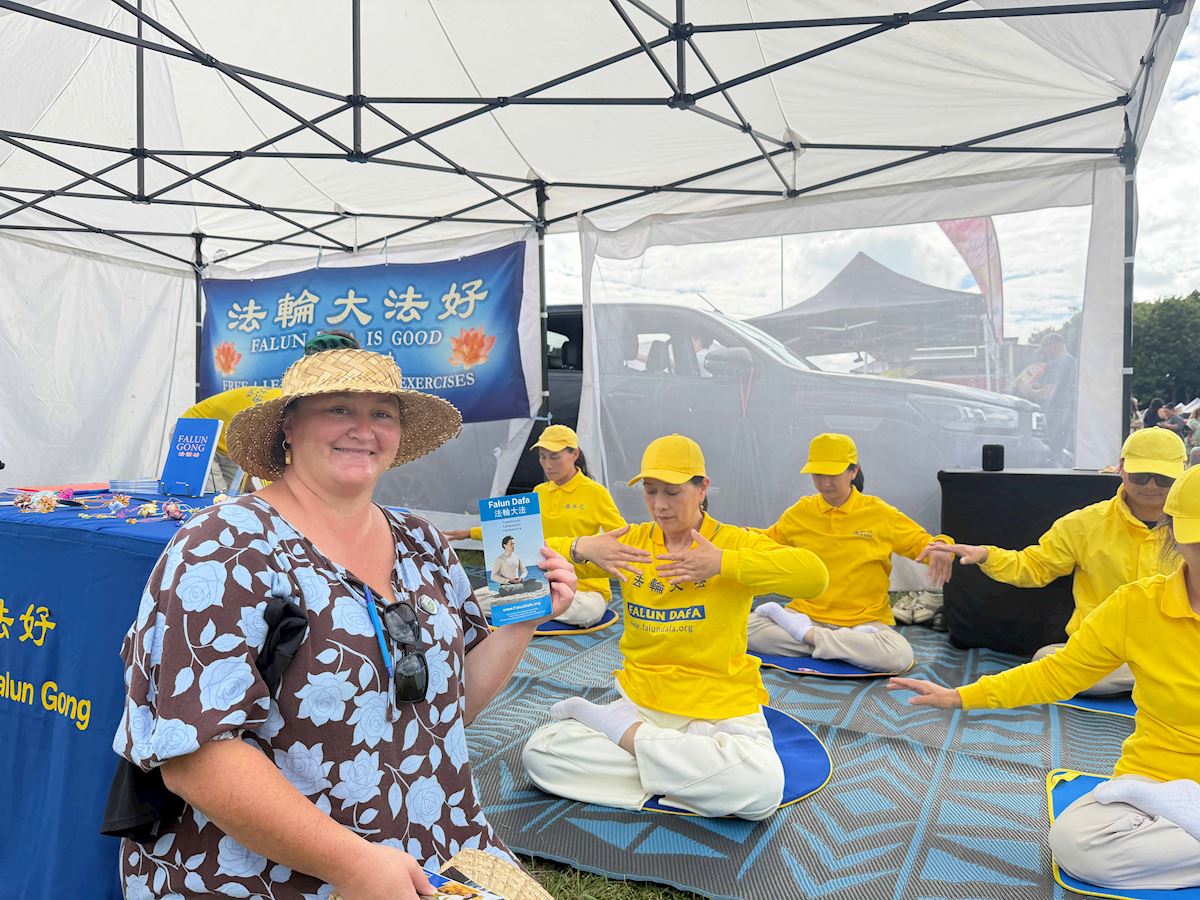 ماوئی سولومون، وکیلی از جزیره چتم، در غرفه فالون دافا توقف کرد. او گفت که بهتازگی به مدیتیشن علاقهمند شده است و میخواهد ازطریق تزکیه، خودِ واقعیاش را کشف کند و رابطهای هماهنگتر با جهان برقرار سازد.