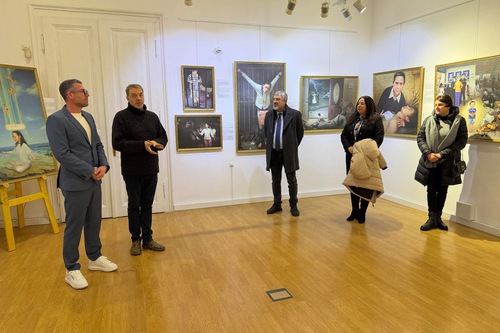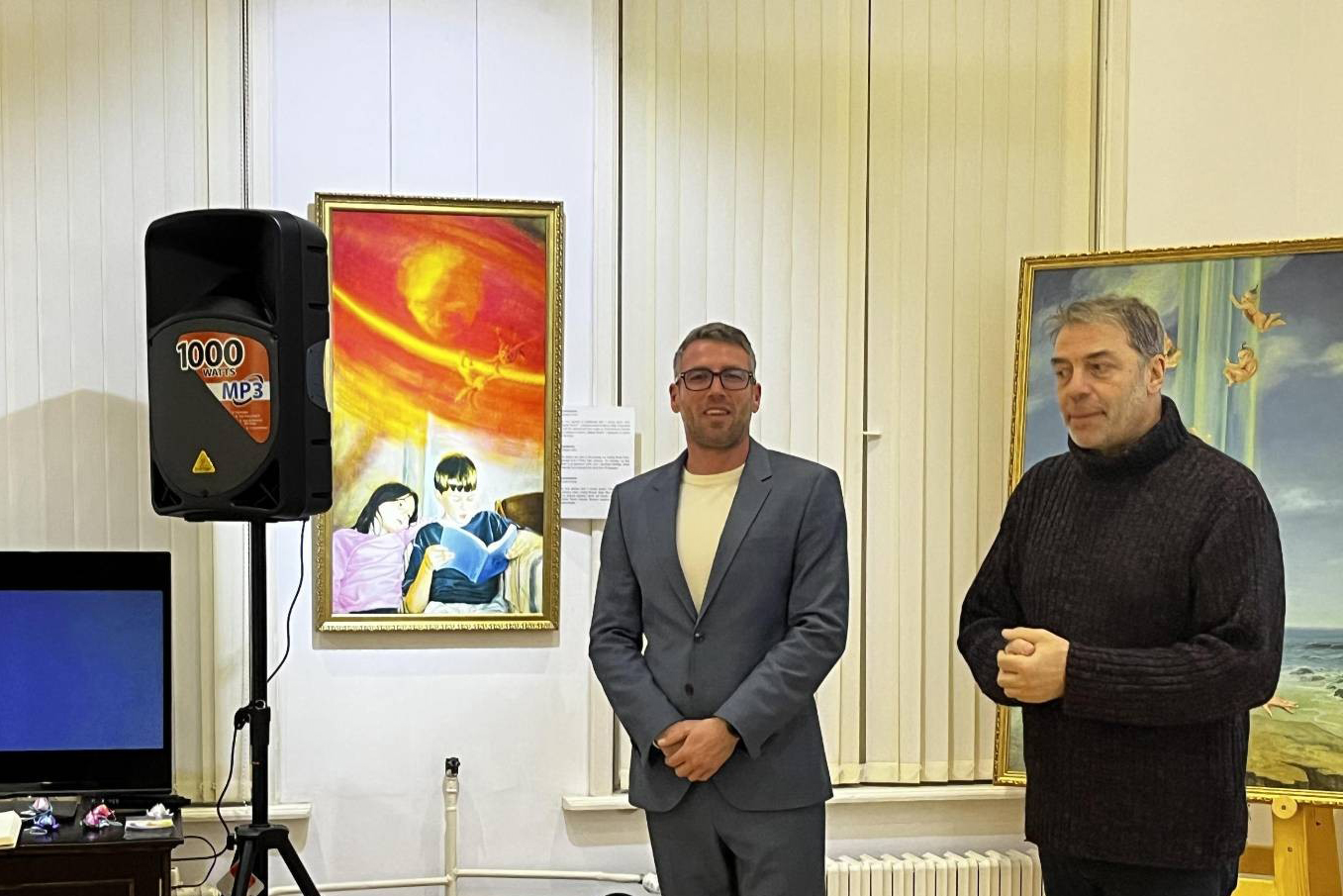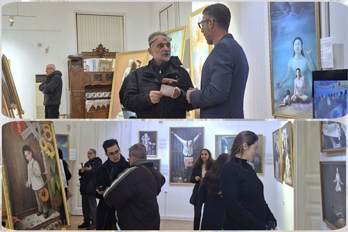 (Minghui.org) نمایشگاه «هنر جِن، شَن، رِن» در ۱۶ژانویه۲۰۲۶، در روسه (بلغارستان) افتتاح شد. این نمایشگاه شامل مجموعهای از ۲۸ نقاشی رنگروغن است که همگی توسط تمرینکنندگان فالون دافا (که فالون گونگ نیز نامیده میشود) خلق شدهاند؛ افرادی که از آزار و شکنجه مذهبی حزب کمونیست چین (ح.ک.چ) گریخته یا جان سالم بهدر بردهاند.