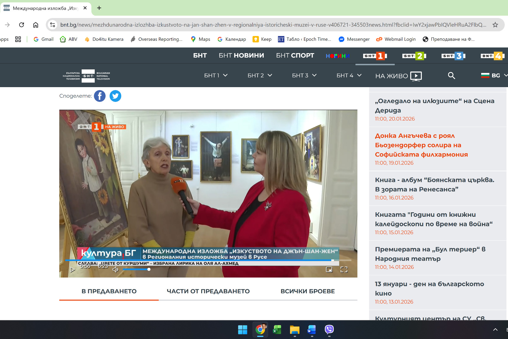 روز دوشنبه، ۱۹ژانویه۲۰۲۶، تلویزیون ملی بلغارستان (BNT) بهصورت زنده از موزه تاریخ روسه، گفتوگویی هفتدقیقهای با تمرینکننده کاتیا کالْفُوا پخش کرد که درباره هدف و محتوای این نمایشگاه توضیح داد.