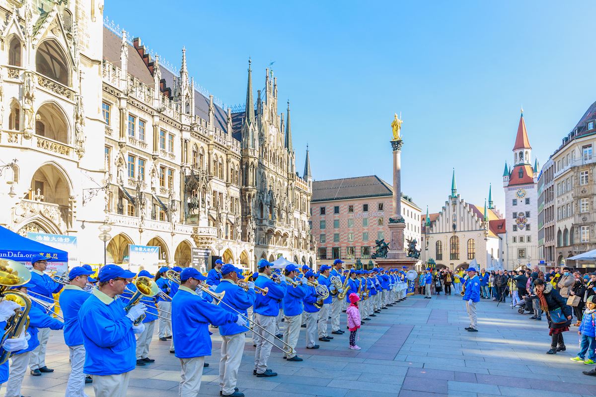 گروه مارش تیان گوئو اروپا در ۲۹اکتبر۲۰۲۱، در میدان مارینپلاتس مونیخ، آلمان، اجرا کرد.
